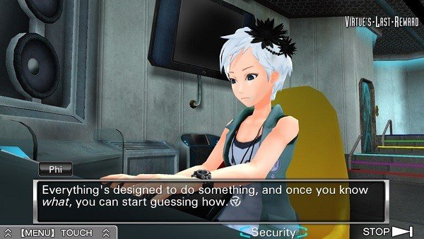 Aunque Virtue´s Last Reward es uno de los juegos con los que más he disfrutado recientemente y más horas le he dedicado tengo que traer a la palestra su primer y gran defecto antes de continuar. Sólo está en INGLÉS. Así que si no tenéis un gran dominio de esta lengua lo pasaréis mal durante el juego. Está lleno de frases hechas, acortamientos extraños, juegos de palabras, conocimientos “locales” y modificación de palabras para darles múltiples significados.