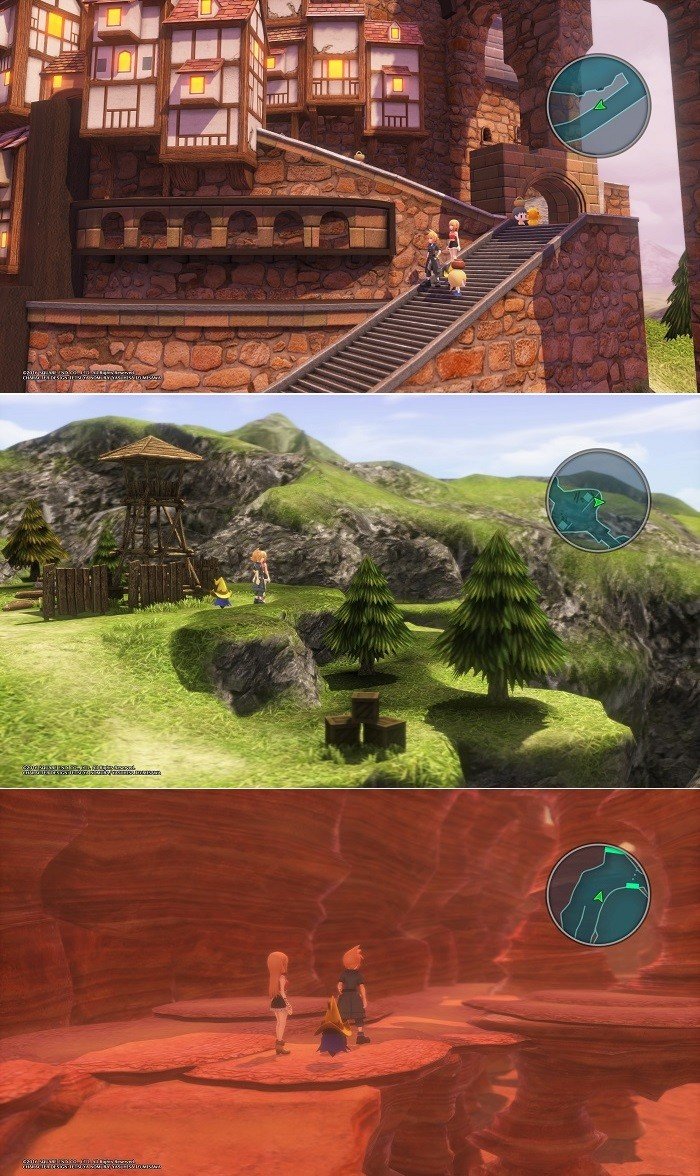 Sin embargo, en World of Final Fantasy, la profundidad de campo es muy reducida y no se puede desactivar, lo que hace que todo lo que no está a menos de 10 metros se vea difuminado. Cuanta mayor calidad de imagen, peor es el borrón. (Pinchar en la imagen para verla a mayor calidad).
