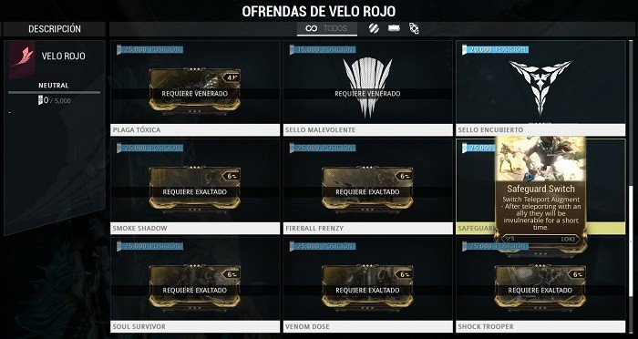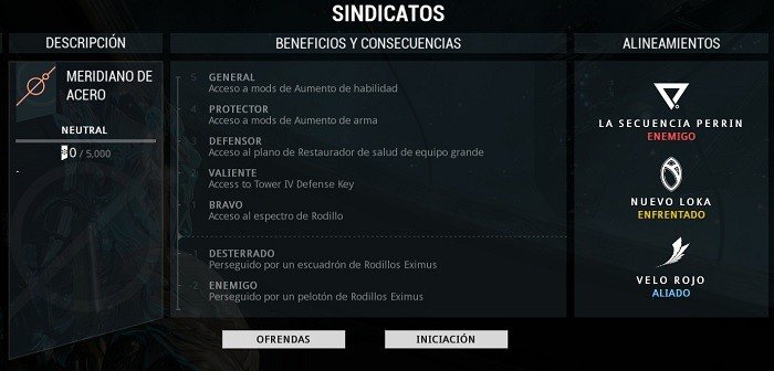 Estos sindicatos nos darán puntos que podremos intercambiar por ofrendas: tres mods de mejora de armas y 3 mods de mejora de habilidades de Warframe.