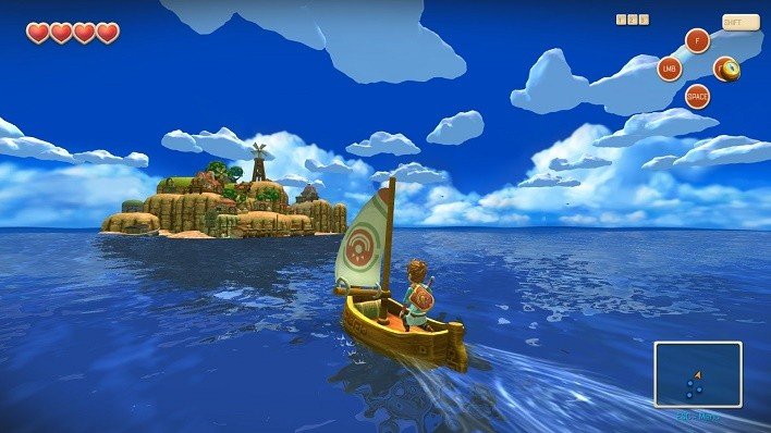 Nuestro primer objetivo es conseguir la espada de nuestro padre, que está oculta en una mazmorra en la isla donde empezamos, ya que nuestro primer arma es un simple palo. Aquí la experiencia es bastante Zelda, ya que en la mazmorra nos encontramos con un puzzle. Además, el combate no es lo más importante del juego, aunque podemos usar varias herramientas a nuestra disposición: el propio palo, o las vasijas, lanzándolas para hacer más daño.