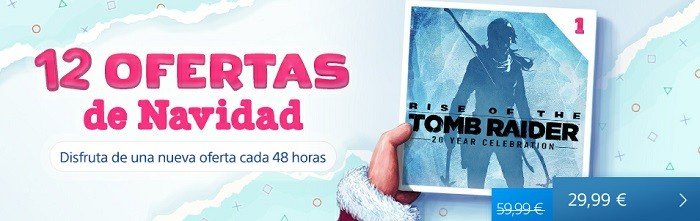 Para empezar tenemos las 12 ofertas de Navidad, juegos AAA a mitad de precio, el primero es Rise of The Tomb Raider y solo durará 2 días así que atentos para pillarlo y para los siguientes ya que todas las ofertas de esta categoría duran lo mismo. (>Link de la oferta)