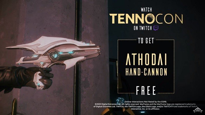 Lo siguiente es ver los directos de la Tennocon en el canal de Twitch de Warframe (https://www.twitch.tv/warframe) y darles a seguir. Solo con verlos, estar siguiéndolos y tener las cuentas conectadas conseguiréis los drops. El primero es por ver la bienvenida y nos dará el primer drop: un cañón de mano Athodai (el de la imagen superior). El segundo es por ver la Tennocon (solo es necesaria media hora para conseguir el drop) y es nada más ni nada menos que un Hydroid Prime con un reactor orokin instalado y una ranura de Warframe extra para poderlo añadir a nuestra colección sin tener que tirar otro Warframe.