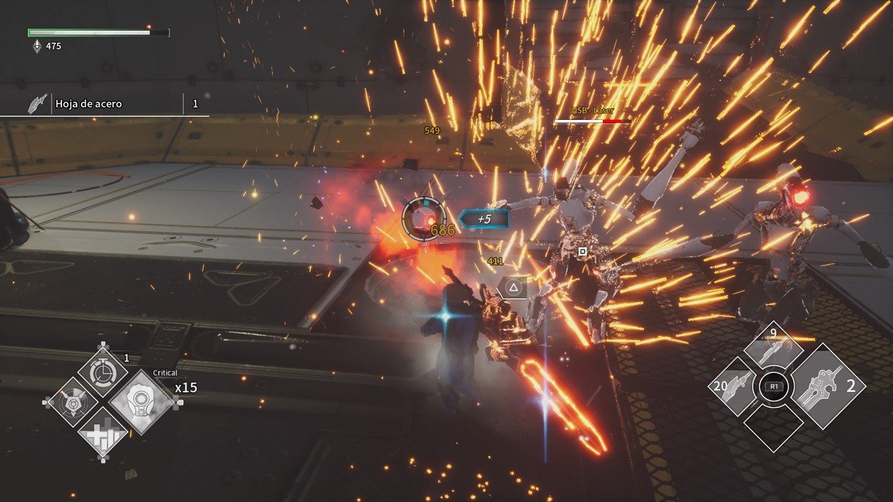 Como decía, tendremos que ir cambiando de armas, de manera que tendremos la normal para usar de forma general, una katana para los enemigos orgánicos, y un espadón perfecto para los robots. No es que las demás espadas no hagan daño al enemigo para el que no esté pensado, pero no hace tanto daño ni rompe su resistencia, por lo que Ultra Age parece que nos va a animar a ir cambiando de espada constantemente.