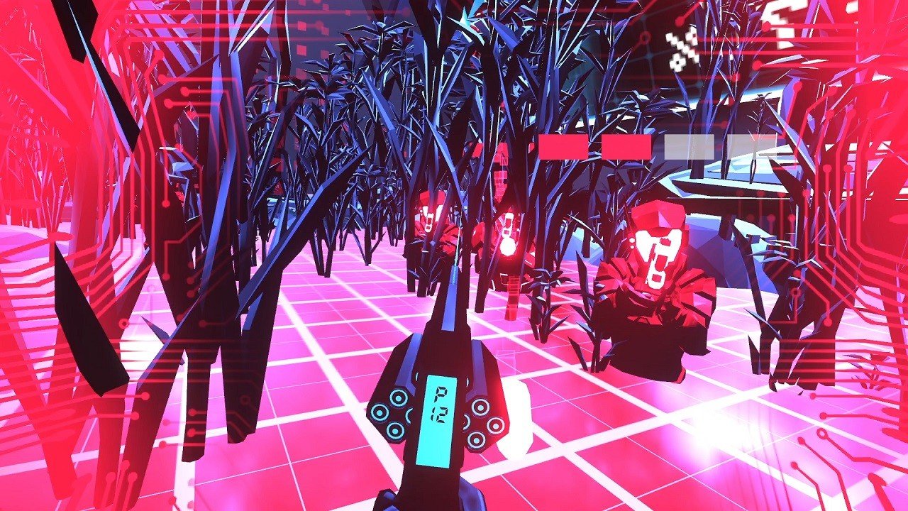 Una buena decisión de diseño de ARK-ADE es el sistema de recarga, ya que para mantenernos pegando tiros sin parar, simplemente tendremos que inclinar el arma hacia arriba o abajo 60º. ¿Realista? Para nada, pero el juego no lo pide en absoluto.