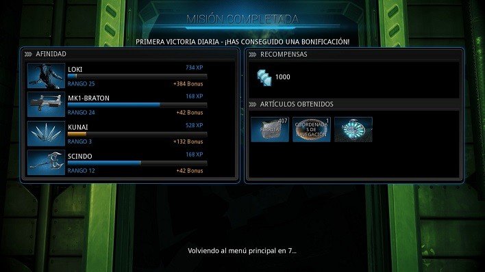 Al final de cada misión tendremos que ir al punto de extracción y una vez fuera se hará el conteo de resultados añadiendo la afinidad por los elementos usados, los créditos ganados y los objetos y mods encontrados.