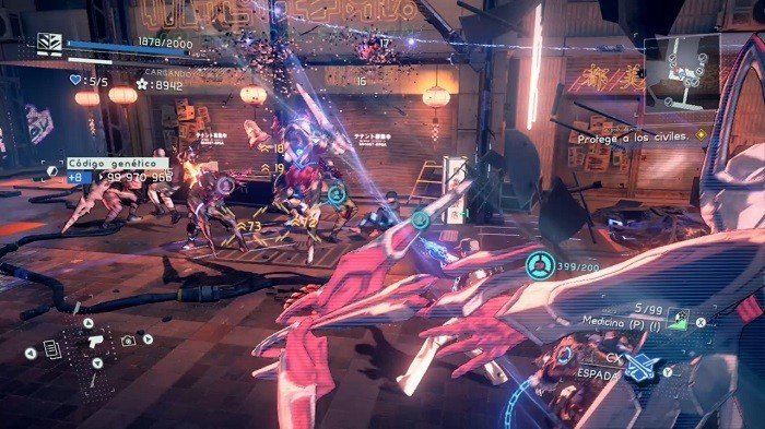 Se nota y mucho que han optimizado muy bien el juego por el increíble rendimiento de este, no me lo creo ni yo de lo bien que se juega a Astral Chain teniendo ocho o diez enemigos en pantalla, algunos atacando a corta distancia, otros a larga distancia y reaccionando perfectamente a todas nuestras acciones.