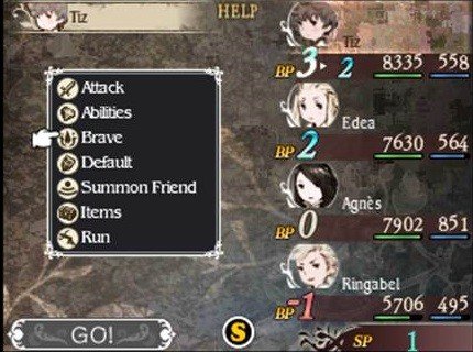 Durante los combates cada personaje tiene Puntos de Batalla (PB) que gasta en realizar acciones en su turno. Si utilizamos Default, el personaje defiende y acumula 1 PB para el siguiente turno, aparte del que recibe en todos los turnos. Si utilizamos Brave, podemos gastar los PB de ese personaje en realizar más acciones en el mismo turno. Pongamos un ejemplo práctico.