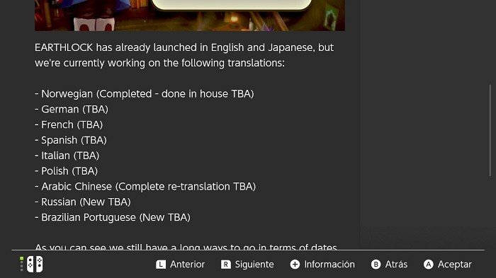 • Idioma: Textos en Inglés y Japonés. Más idiomas en el futuro.