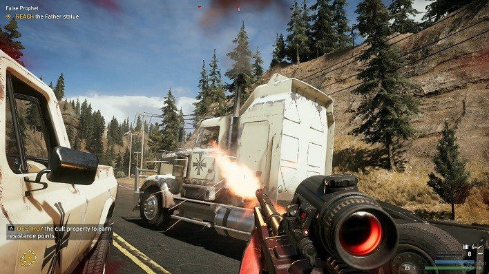 Far Cry 5 es un juego en primera persona en la que la acción es constante. Acción que bien encontramos por los bosques al ser atacados por algún animal salvaje o por carretera en algún poblado al ser atacados por una patrulla de extremistas religiosos. Su mundo abierto quizás no sea tan grande como esperábamos, con un mapeado si comparamos con otros juegos un pelín justito, pero que ofrece justo lo necesario para no salir de Montana.