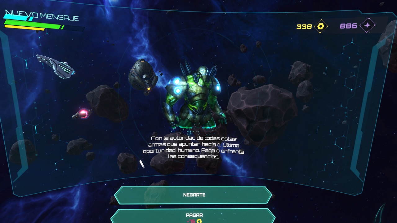 Como ocurre en todo rogue-lite, hay una progresión global. En este caso, se consigue mediante la experiencia. Con ella podremos avanzar en diversos árboles de habilidades que nos permitirán mejorar nuestra nave, mejorar las capacidades de negociación para reducir el coste en las tiendas o añadir nuevas ventajas que aparecerán en sucesivas partidas. Es una progresión constante y satisfactoria, algo que parece es más complejo de lo que parece viendo los últimos rogue-lites que se han estrado para la VR.