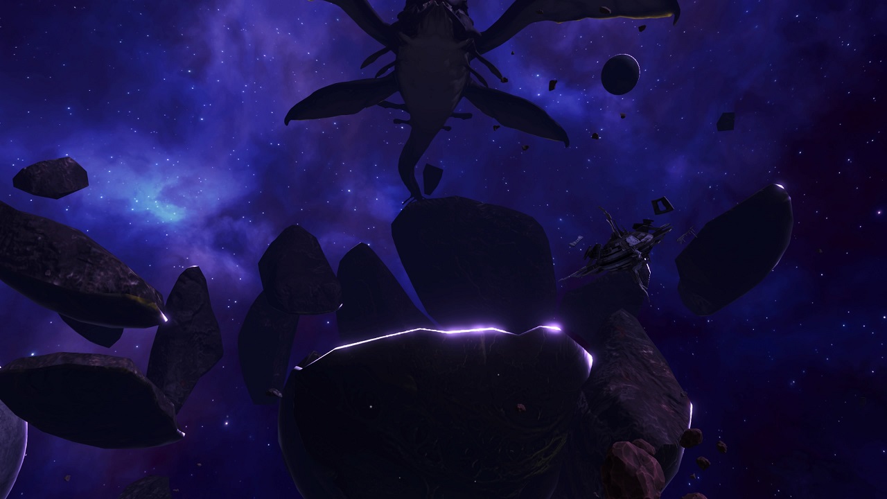Para dirigir a la nave, activaremos un tiempo bala, trazando entonces el rumbo con la dirección de nuestra mano. ¿Queremos apuntar las armas? Lo hacemos físicamente con nuestra manita. Después hay ciertas acciones que sí realizamos con botones, como activar el turbo de la nave, o ir cambiando entre las tres armas disponibles con el joystick. El resultado es un esquema de control muy sencillo, pero que funciona a las mil maravillas. Además se logra un buen equilibrio entre la acción y la estrategia, para no olvidar las raíces de Stellaris en ningún momento.