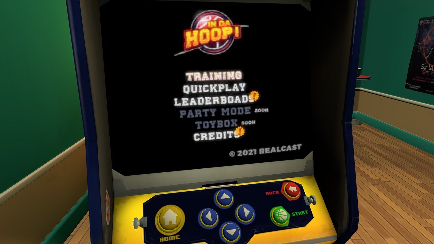 Al empezar a jugar en In Da Hoop! tendremos que elegir controlar nuestras manos: usando los Touch Controllers, o el tracking de manos. Ambos métodos de control tienen una progresión independiente. En cualquier momento, a través del menú en forma de una máquina arcade podremos cambiar entre ambos métodos, por lo que podremos experimentar para ver cómo nos sentimos más cómodos, o mejor, cómo nos lo pasamos mejor.