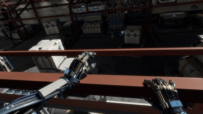 Sin embargo, ésta no es la única forma de movernos, ya que contamos con unos pequeños propulsores en las muñecas para corregir cualquier mal movimiento que hayamos hecho. Más adelante en la historia, también contamos con una mochila a reacción, con la cual desplazarnos rápidamente al pulsar un stick, o incluso detenernos por completo al pulsar en el otro stick. Esto nos da bastantes opciones, al poder movernos con los pequeños propulsores, la mochila o por los agarres por el escenario, siendo algo totalmente inmersivo.