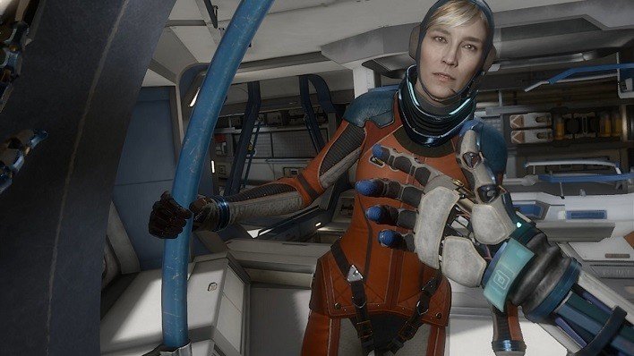 Por un lado, las expresiones faciales de Olivia son fantásticas, y es otro de los motivos por los que nos encariñamos de ella, al parecer un humano por cómo se mueve, cómo habla, etc. También está todo el tema de la iluminación, ofreciendo algunos momentos brillantes, y si bien tuve que reducir la calidad de las sombras para que el juego fuera bien, eso no impedía que me siguiera quedando con la boca abierta. La acción tiene lugar por la órbita de Saturno, y ver el planeta de fondo es algo que me encanta. El arte del juego también es muy bueno, ofreciendo un conjunto muy sólido, y que de nuevo, ayuda a sentir que estamos en un universo real del distante futuro.