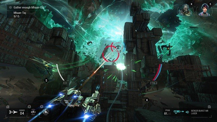 En general, todo el tiempo estaremos a bordo de nuestra nave cumpliendo diferentes objetivos. Los controles son bastante sencillos, por lo que no esperéis un simulador a lo Elite Dangerous o incluso la profundidad de los Ace Combat. En su lugar, solo podremos movernos con el stick izquierdo, mientras que con el derecho regularemos la velocidad o efectuaremos una especie de «Barrel Roll», siempre que tengamos la energía necesaria. Es una pena no poder rotar nuestra nave como en muchos otros arcades, pero al menos, tenemos unas mecánicas que funcionan y son muy fáciles de dominar.