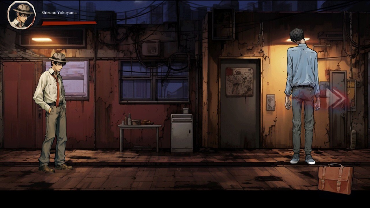 En vez de apostar por ser una Visual Novel donde sólo avanzar en la trama, en Other Side of Mist and Mountain también hay un componente jugable para representar las investigaciones del protagonista. Básicamente, se reducen a desplazarnos por los entornos de scroll lateral resolviendo varios puzzles. ¿El problema de la traducción? Aquí se amplifica aún más, ya que no entenderemos qué hacer en varios casos.