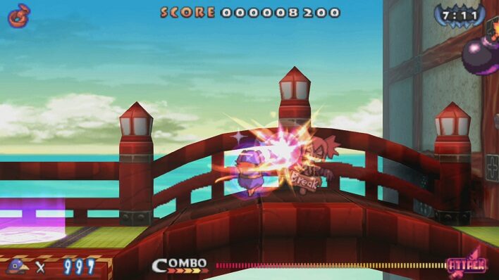 Otros movimientos nuevos son unos ataques con el cuchillo más amplios para tener más alcance, o lo que es mejor, lanzarnos en picado mientras somos invencibles para destruir todo lo que esté en nuestro camino. A nivel de dificultad también hay ciertos ajustes, puesto que ahora en la dificultad «Normal» aguantamos sólo 3 impactos antes de morir, mientras que en «Fácil» aguantaremos 3 (como en el original en «Normal»), además de haber más bloques que harán las secciones de plataformas algo más sencillas. Eso sí, el juego se reirá de nosotros al ponernos un trajecito de bebé en vez de la bufanda que llevaríamos normalmente. Esto no va a hacer el juego un paseo por el parque, con que las mil vidas seguirán siendo muy, muy útiles.