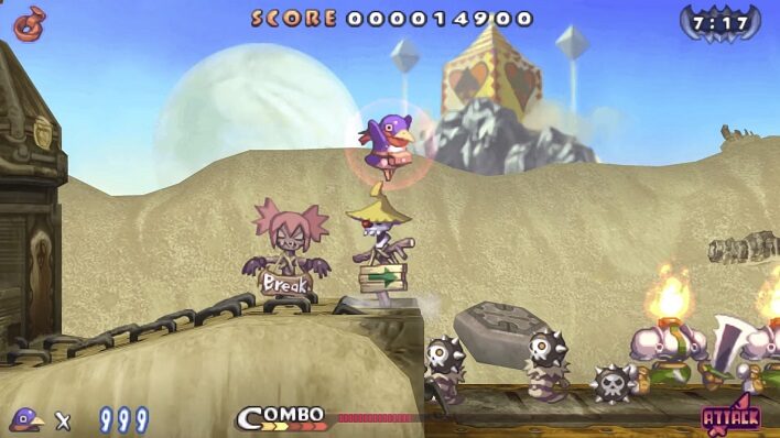 A nivel de mecánicas, Prinny: Can I Really Be the Hero? es un plataformas de scroll lateral que se inspira muchísimo en Ghost’n Goblins y similares plataformas antiguos, por lo que tenemos varios ingredientes que no podían faltar: