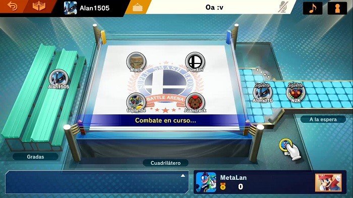En el modo en línea tendremos dos opciones principales: Smash y Espectador. En el modo espectador podremos ver combates aleatorios que están ocurriendo en directo.