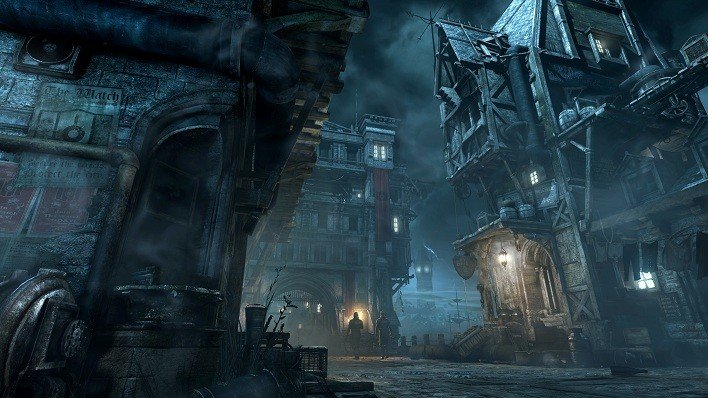 Gráficamente el juego no llega a lo esperado en la versión next-gen, y es que parece que su desarrollo en consolas anteriores ha penalizado la versión de PS4 que es la que he podido jugar. Cargas al traspasar ciertas zonas de la ciudad y personajes y modelados no demasiados vistosos que parecen, ya digo, propios de PS3 o Xbox 360. Eso sí, la ambientación está plenamente conseguida con un aire de steampunk victoriano, maquinaria y tecnología que concede al título un aire siniestro y depresivo que realmente le queda de fábula. Las zonas de iluminación son las que mejor se nota el motor gráfico del juego y como pasan a la penumbra con tan solo un click del interruptor o al apagar las velas. Todo ello envuelto con una buena banda sonora y unos efectos que nos ponen en aviso cuando la situación se va a convertir en tensa.